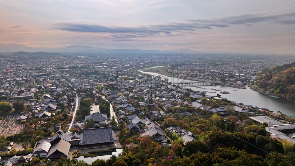 video Aerial drone view of the Arashiyama district in Kyoto Japan in daylight Royalty Free Stock Video Footage
