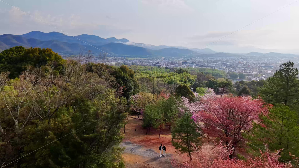 video Aerial drone view of the cherry blossom trees in the Arashiyama district in Kyoto Japan in daylight Royalty Free Stock Video Footage