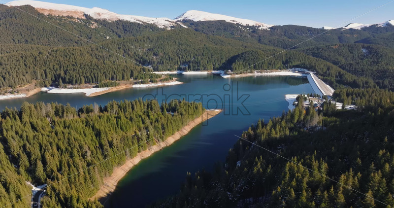 Video Aerial drone view of the Bolboci Lake in the heart of the mountains, near Brasov, Romania Royalty Free Stock Video Footage