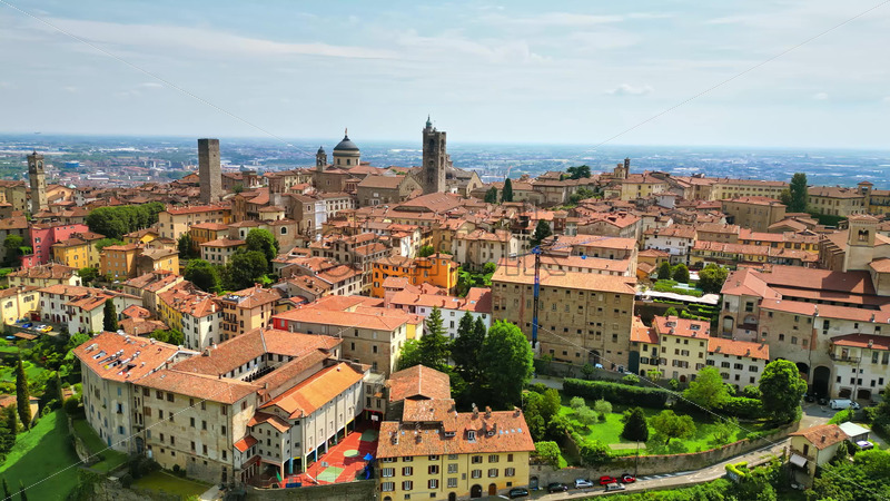 VIDEO Aerial, drone view of the buildings of Bergamo, Italy in daylight Royalty Free Stock Video Footage