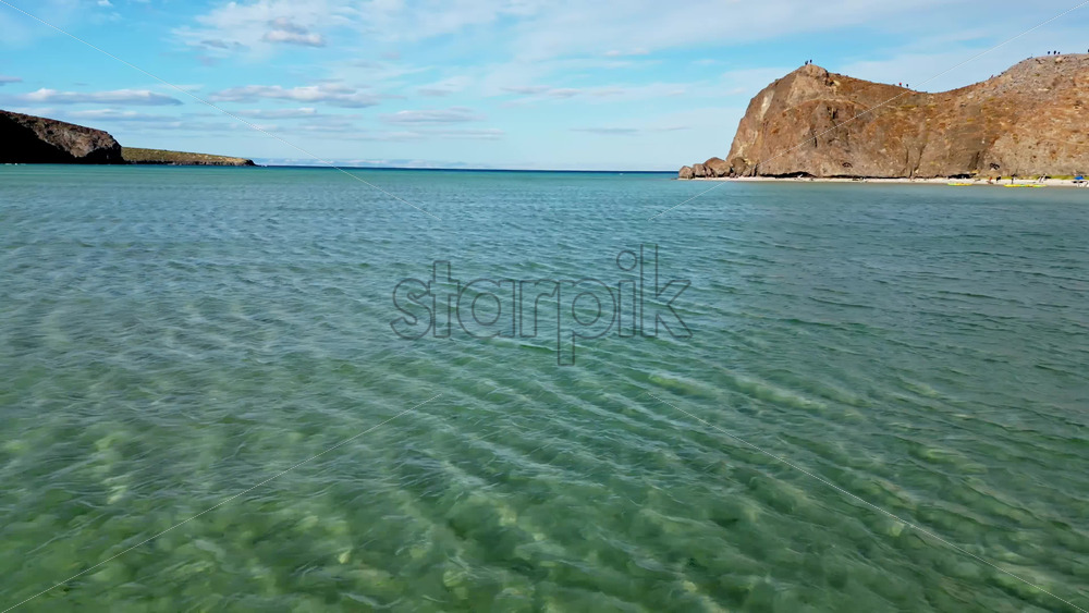 Aerial drone view of the calm turquoise sea and rocky coastline of Baja California, Mexico Royalty Free Stock Video Footage
