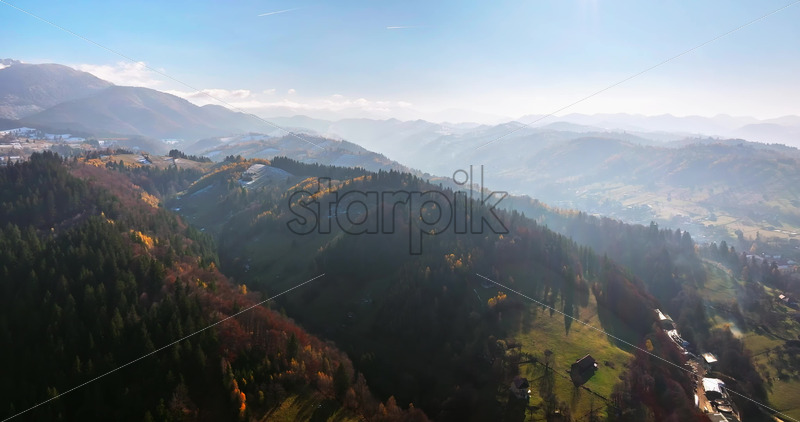 Video Aerial drone view of the Carpathian Mountains, near Brasov, Romania Royalty Free Stock Video Footage