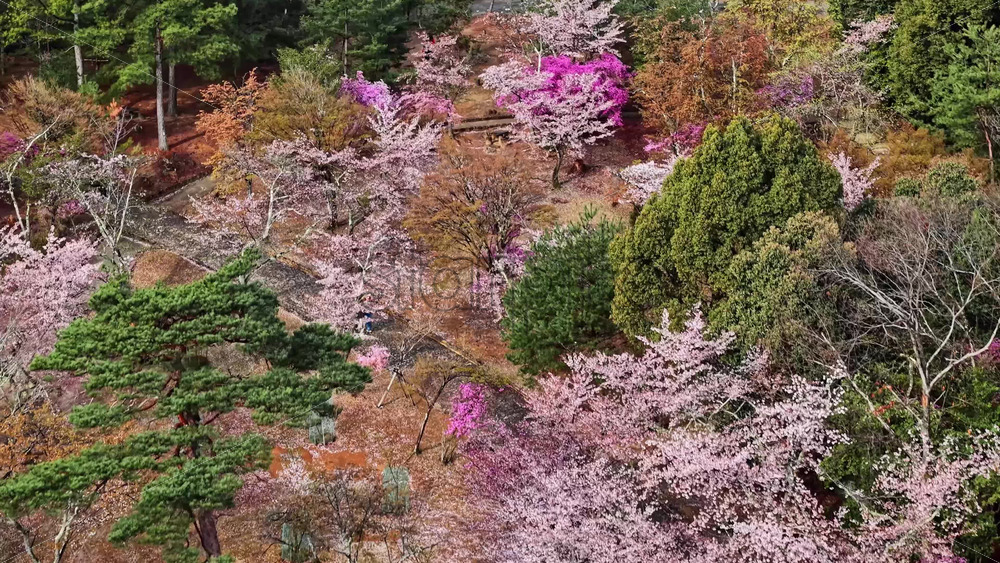 video Aerial drone view of the cherry blossom trees in the Arashiyama district in Kyoto Japan in daylight Royalty Free Stock Video Footage