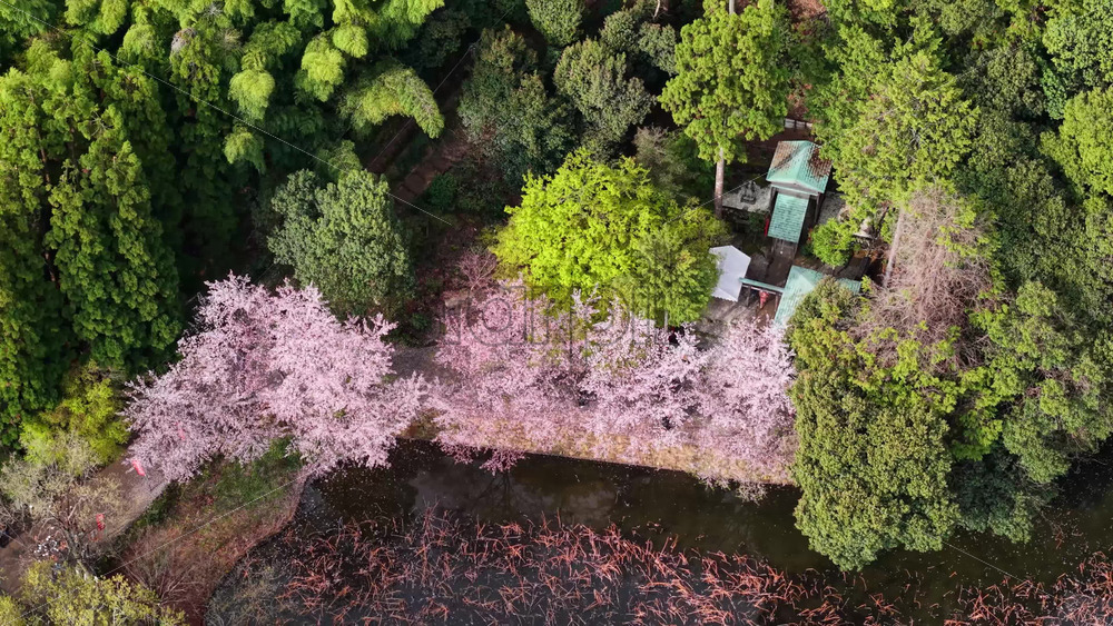 video Aerial drone view of the cherry blossom trees in the Arashiyama district in Kyoto Japan in daylight Royalty Free Stock Video Footage