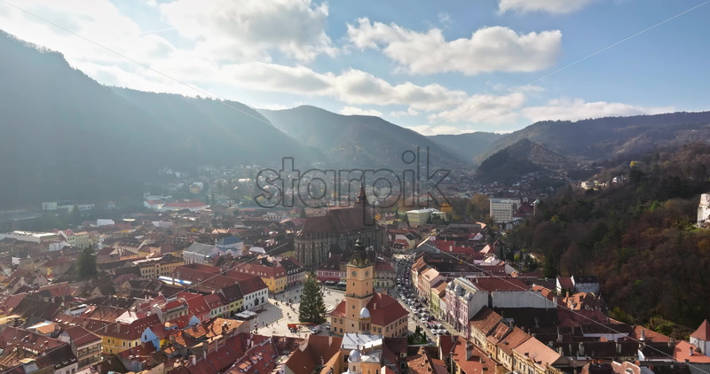 Home » Shop » 1 Video » Video Aerial drone view of the Christmas tree being installed in The Council Square in the historic center of Brasov, Romania