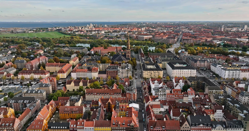 Video Aerial drone view of Vesterbro district in Copenhagen, Denmark at sunset Royalty Free Stock Video Footage