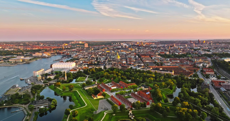 VIDEO Aerial drone view of the Citadel and the city centre of Copenhagen, Denmark Royalty Free Stock Video Footage