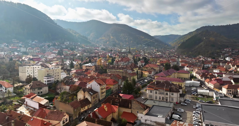 Video Aerial drone view of the city center of Brasov in south-eastern Transylvania, Romania surrounded by mountains Royalty Free Stock Video Footage