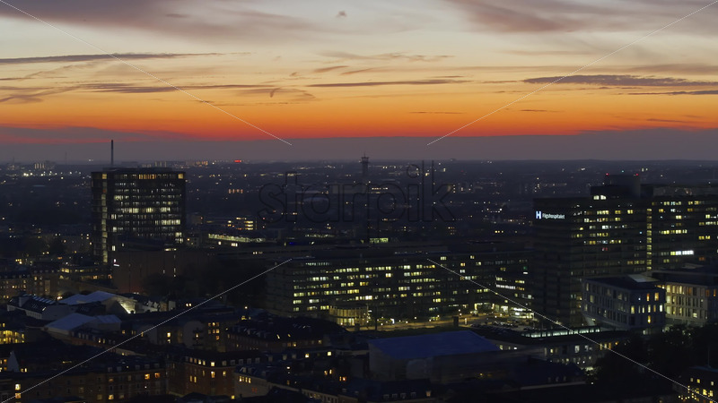 Video Aerial drone view of Vesterbro district in Copenhagen, Denmark at sunset Royalty Free Stock Video Footage