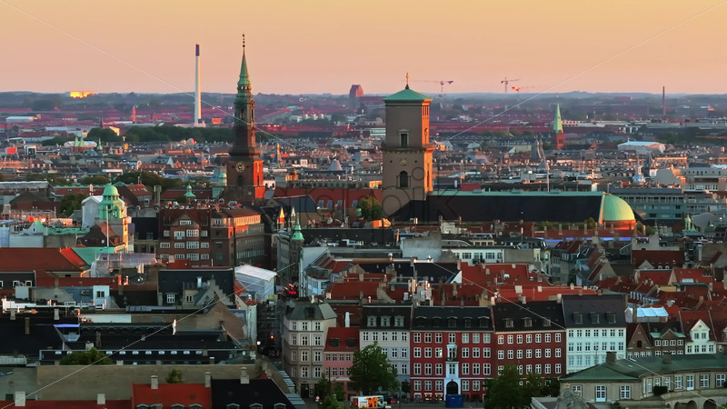 VIDEO Aerial drone view of the city centre of Copenhagen, Denmark at sunset Royalty Free Stock Video Footage