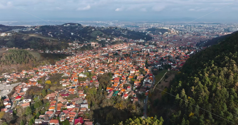 Video Aerial drone view of the city of Brasov in south-eastern Transylvania, Romania surrounded by mountains Royalty Free Stock Video Footage