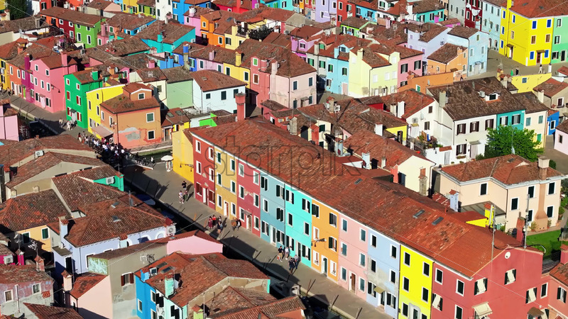 VIDEO Aerial drone view of the colourful houses of Burano Island, Italy Royalty Free Stock Video Footage