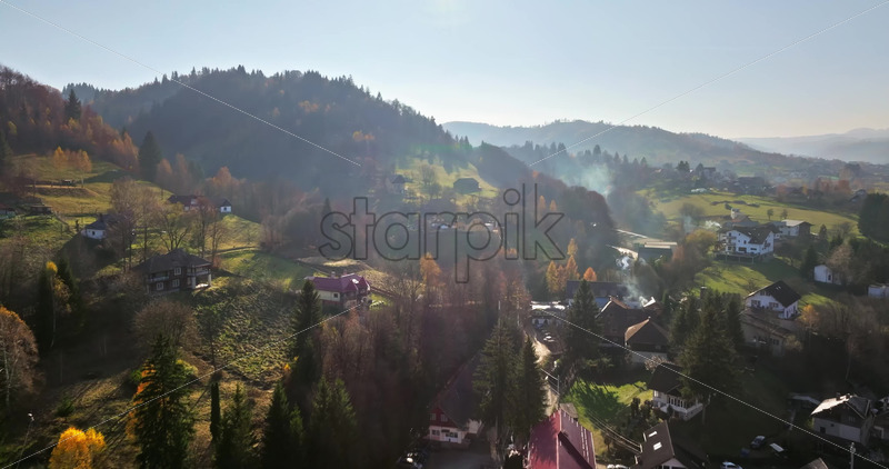 Video Aerial drone view of the commune in Brasov County, Transylvania, Romania Royalty Free Stock Video Footage