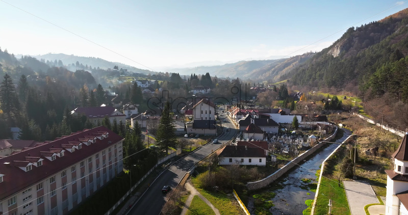 Video Aerial drone view of the commune in Brasov County, Transylvania, Romania Royalty Free Stock Video Footage