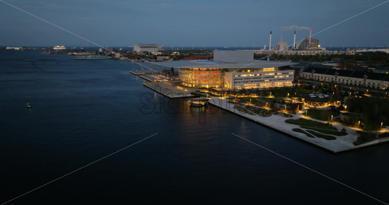 Video Aerial drone view of the Copenhagen Opera House in Denmark at night Royalty Free Stock Video Footage