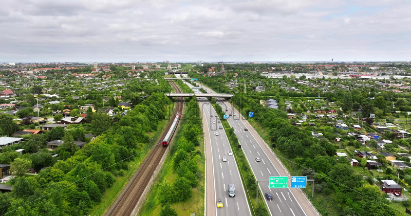 VIDEO Aerial drone view of the European route E20 on a cloudy day Royalty Free Stock Video Footage