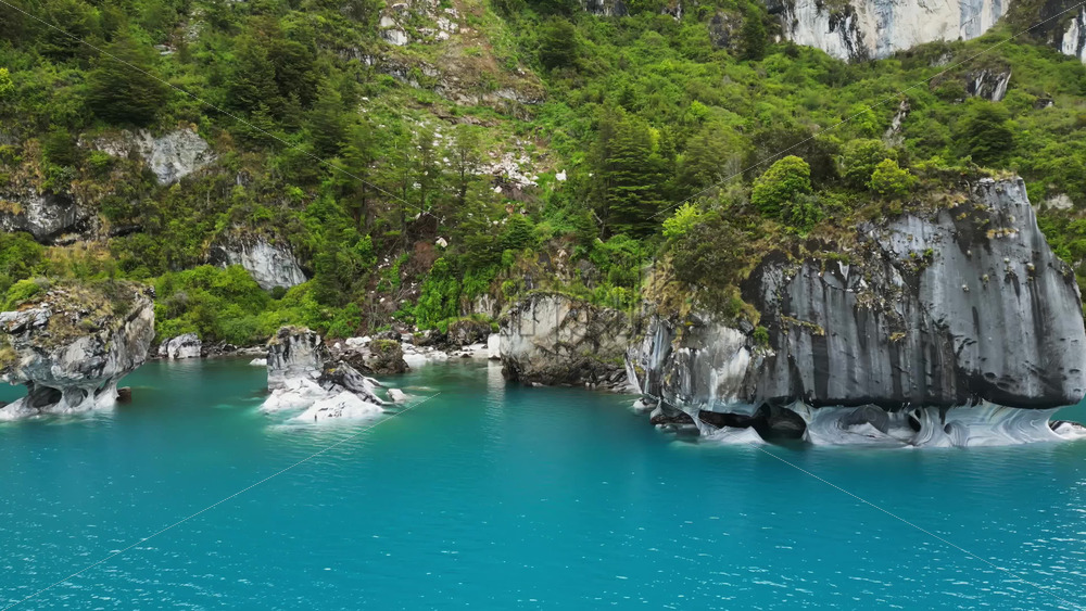 Aerial drone view of the famous marble caves of Patagonia, carved by centuries of water erosion Royalty Free Stock Video Footage