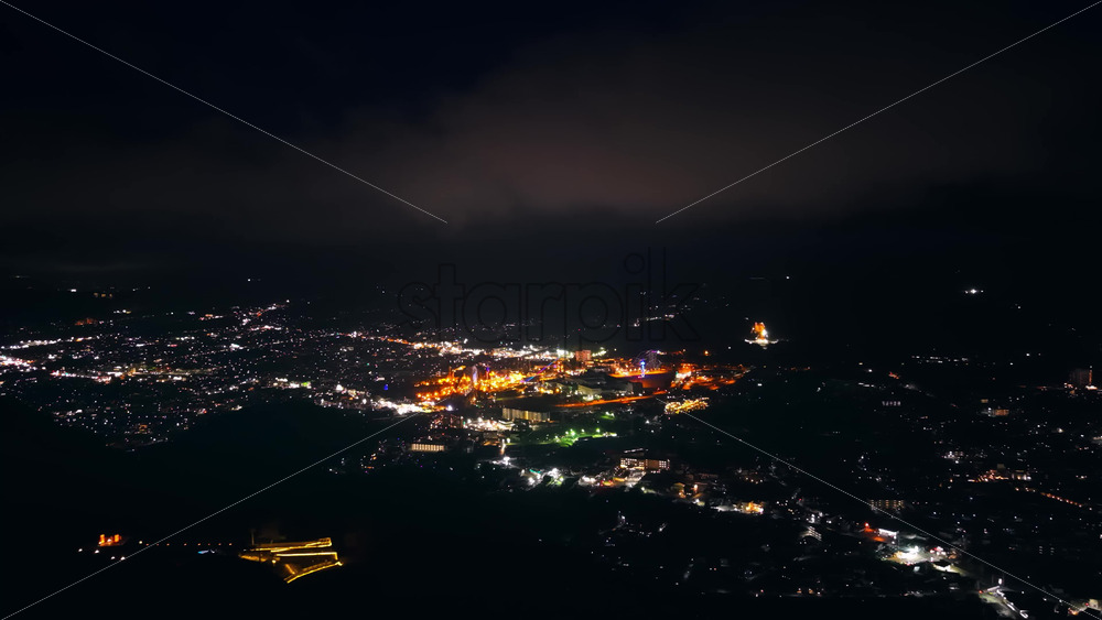 video Aerial drone view of the Fujikawaguchiko town, Japan at night Royalty Free Stock Video Footage