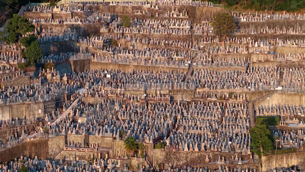 video Aerial drone view of the Higashi Otani Cemetery in Kyoto, Japan in daylight Royalty Free Stock Video Footage