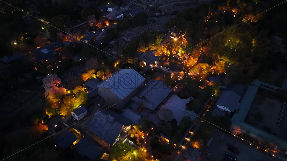 video Aerial drone view of the Higashi Otani Cemetery in Kyoto, Japan in the evening Royalty Free Stock Video Footage
