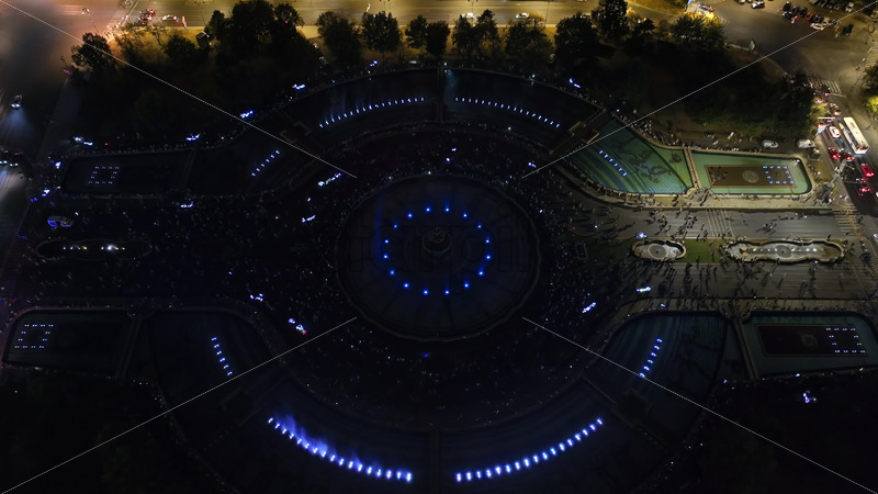 VIDEO Aerial drone view of the illuminated Bucharest fountains in Romania, at night Royalty Free Stock Video Footage