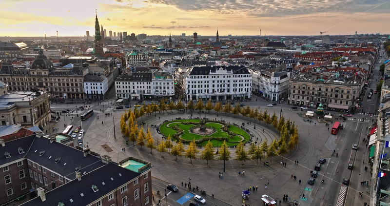 Video Aerial drone view of the Kongens Nytorv public square in Copenhagen, Denmark in daylight Royalty Free Stock Video Footage