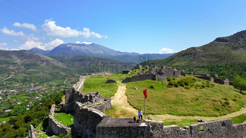 VIDEO Aerial, drone view of the Lezhe Castle in Lezhe, Albania Royalty Free Stock Video Footage