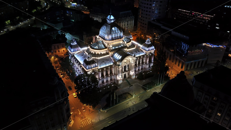 Home » Shop » 1 Video » Video Aerial drone view of the Palace of the Deposits and Consignments illuminated in Bucharest, Romania at night