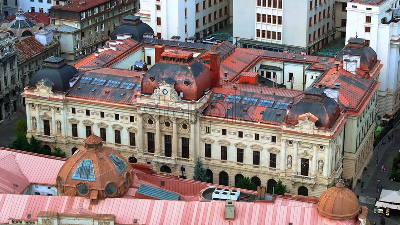 VIDEO Aerial drone view of the Palace of the National Bank of Romania in Bucharest Royalty Free Stock Video Footage