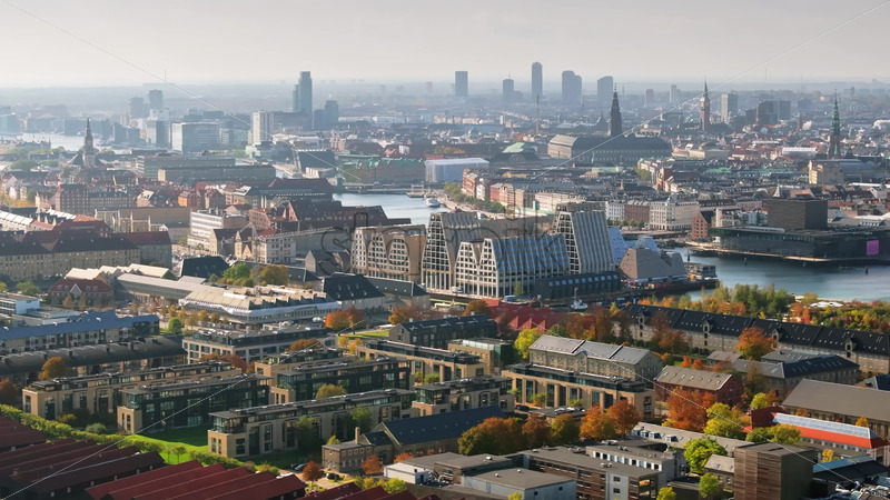 Video Aerial drone view of the Paper Island urban oasis surrounded by water in Copenhagen, Denmark in daylight Royalty Free Stock Video Footage