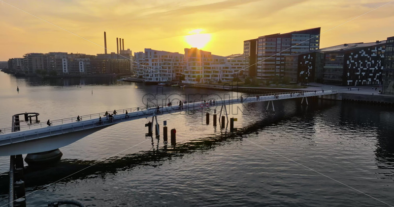 Video Aerial drone view of the Quay Bridge across the port of Copenhagen, Denmark at sunset Royalty Free Stock Video Footage