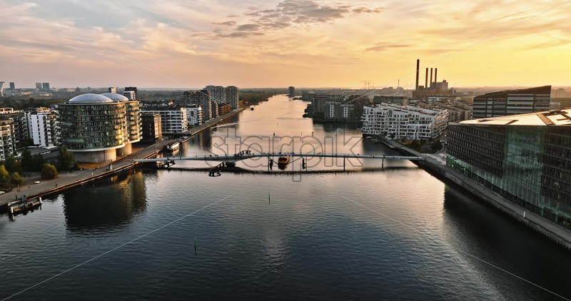 Video Aerial drone view of the Quay Bridge across the port of Copenhagen, Denmark at sunset Royalty Free Stock Video Footage