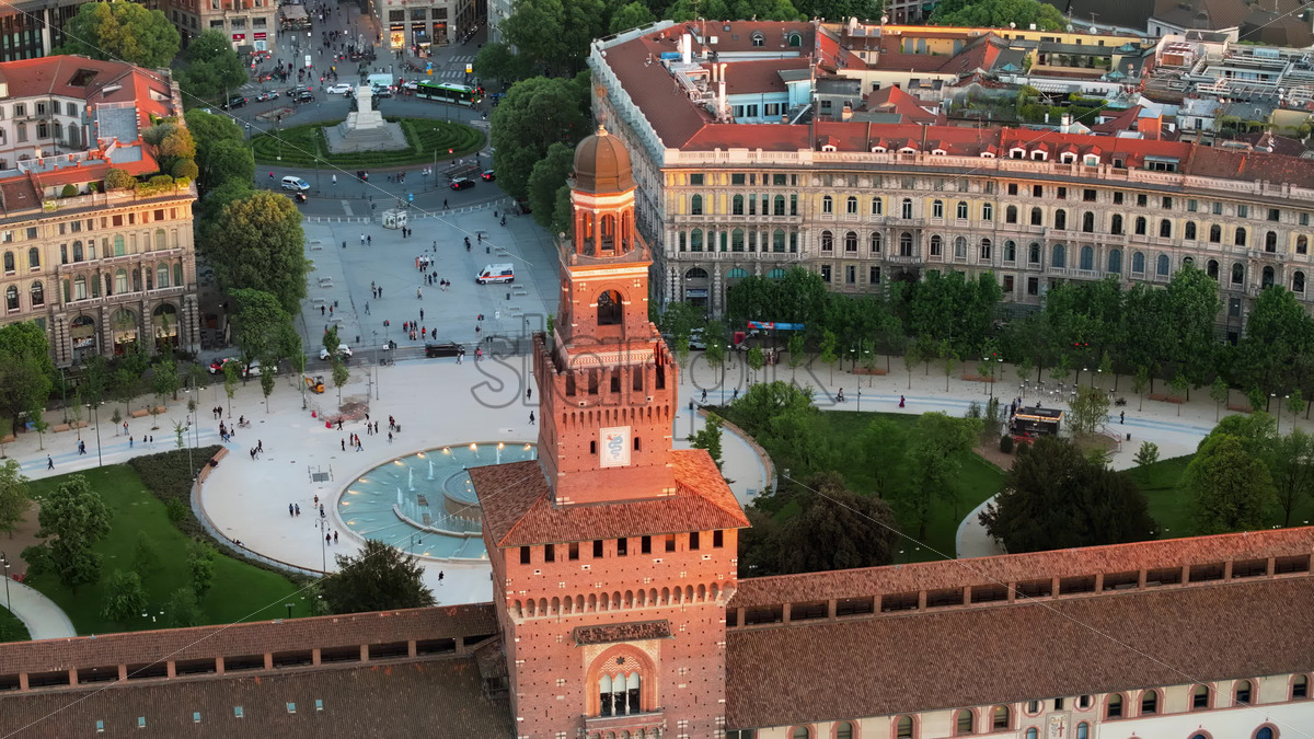 Video Aerial drone view of the Sforzesco Castle Milan, Italy, Royalty free stock footage Royalty Free Stock Video Footage
