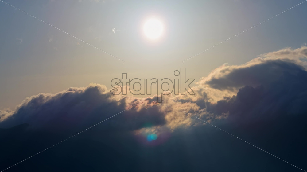 Home » Shop » 1 Video » Video Aerial drone view of the sun peaking through the clouds