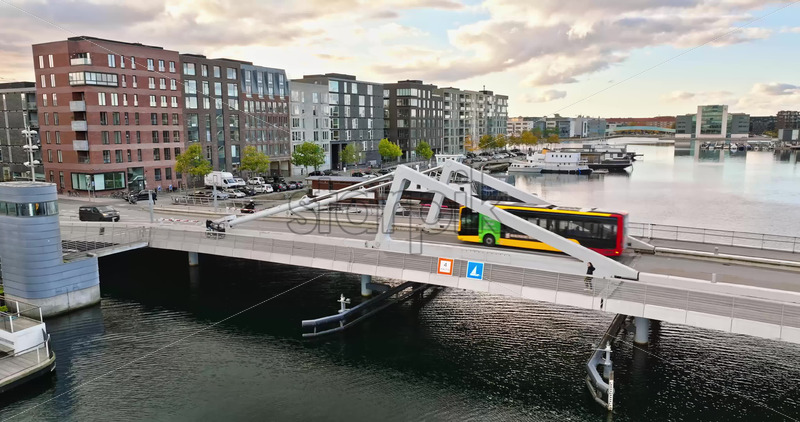 Video Aerial drone view of the Teglholmen peninsula in the South Harbour of Copenhagen, Denmark Royalty Free Stock Video Footage