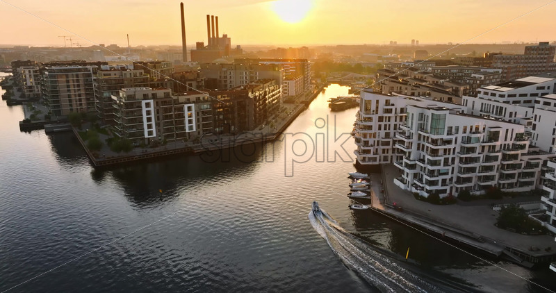 Video Aerial drone view of the Teglholmen peninsula in the South Harbour of Copenhagen, Denmark Royalty Free Stock Video Footage