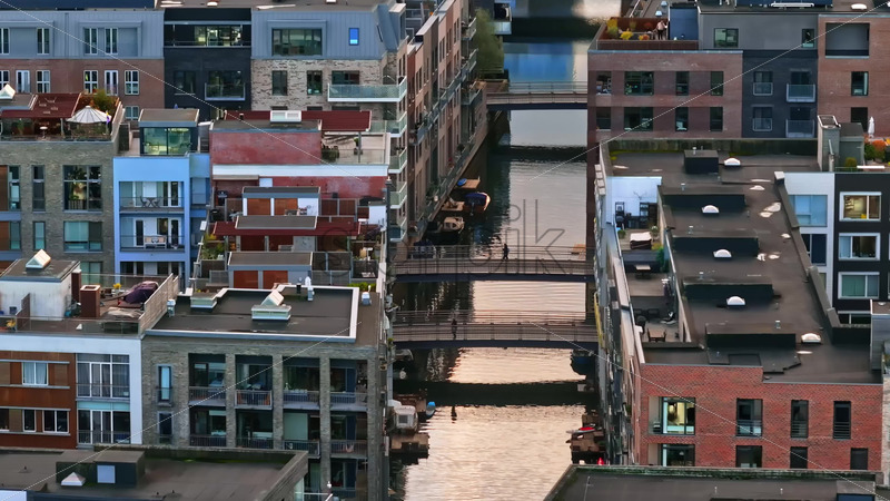 Video Aerial drone view of the Teglholmen peninsula in the South Harbour of Copenhagen, Denmark Royalty Free Stock Video Footage