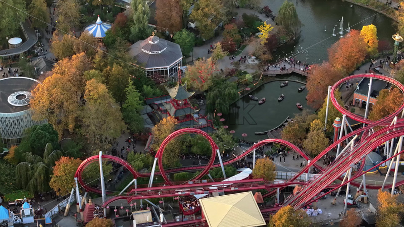 Home » Shop » 1 Video » Video Aerial drone view of the Tivoli amusement park and the City Hall in Copenhagen, Denmark at sunset