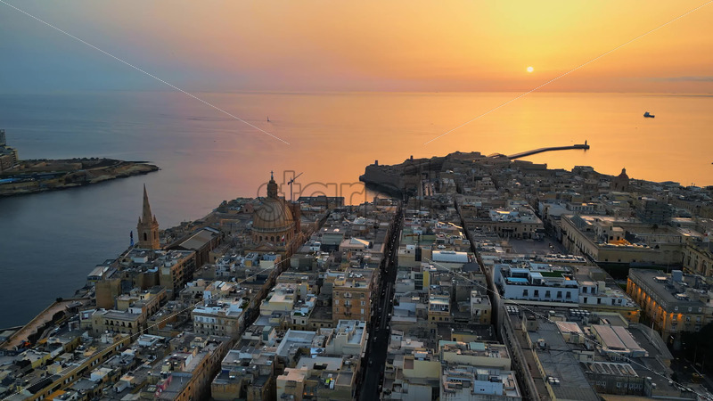 VIDEO Aerial drone view of the walled city of Valletta, Malta, surrounded by the Mediterranean sea in the evening Royalty Free Stock Video Footage