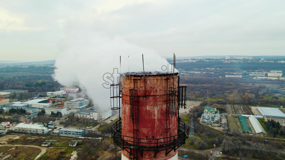 Aerial drone view of thermal station with smoke coming out of the tube. Buildings, roads and bare trees on the background. Cloudy weather. Chisinau, Moldova Royalty Free Stock Video Footage Royalty Free Stock Video Footage