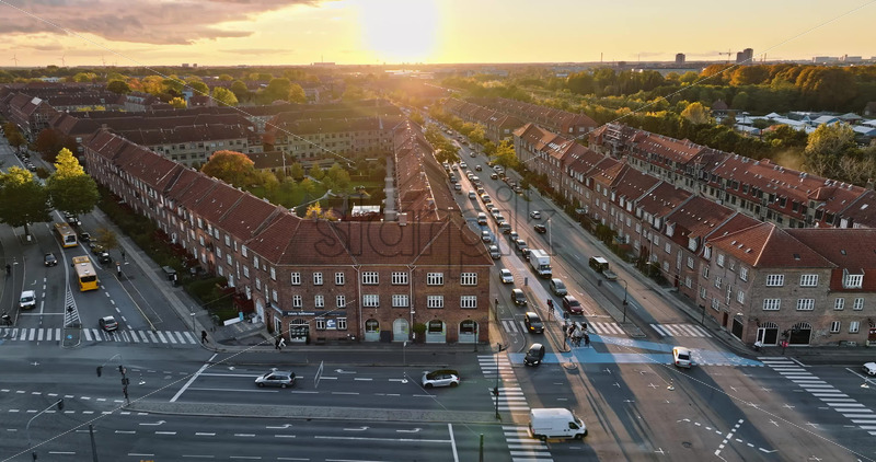 Video Aerial drone view of Vesterbro district in Copenhagen, Denmark at sunset Royalty Free Stock Video Footage