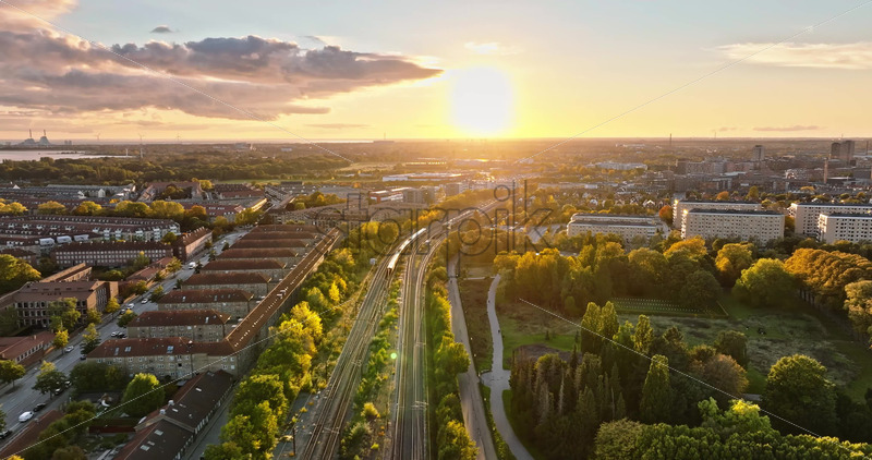 Video Aerial drone view of Vesterbro district in Copenhagen, Denmark at sunset Royalty Free Stock Video Footage
