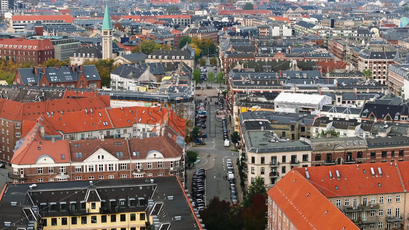 Video Aerial drone view of Vesterbro district in Copenhagen, Denmark in daylight Royalty Free Stock Video Footage