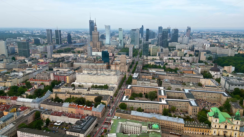 Warsaw, Poland – October 31, 2025: Aerial drone view of central Warsaw showing the National Museum area, the Palace of Culture, and skyscrapers Royalty Free Stock Video Footage
