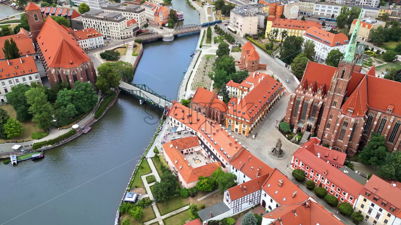 VIDEO Aerial drone view of Wroclaw city on the Oder River in western Poland Royalty Free Stock Video Footage