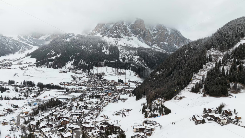 Video Aerial hyperlapse timelapse of Corvara village in Dolomites mountains. Winter season Royalty Free Stock Video Footage