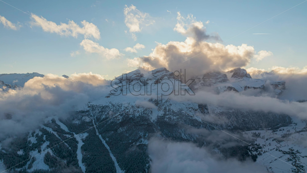 video Aerial hyperlapse timelapse of Dolomites Mountains in winter season. Moving clouds at sunset Royalty Free Stock Video Footage