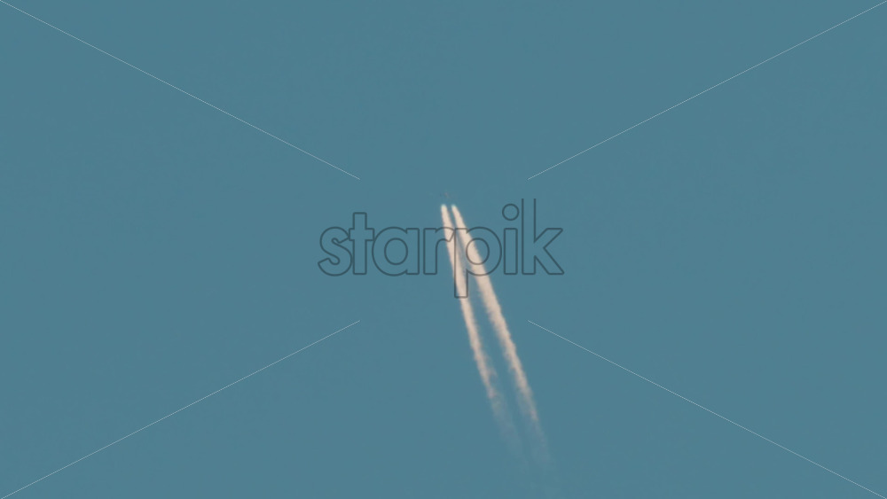 Airplane flying high above leaving long contrails in a clear blue sky Royalty Free Stock Video Footage