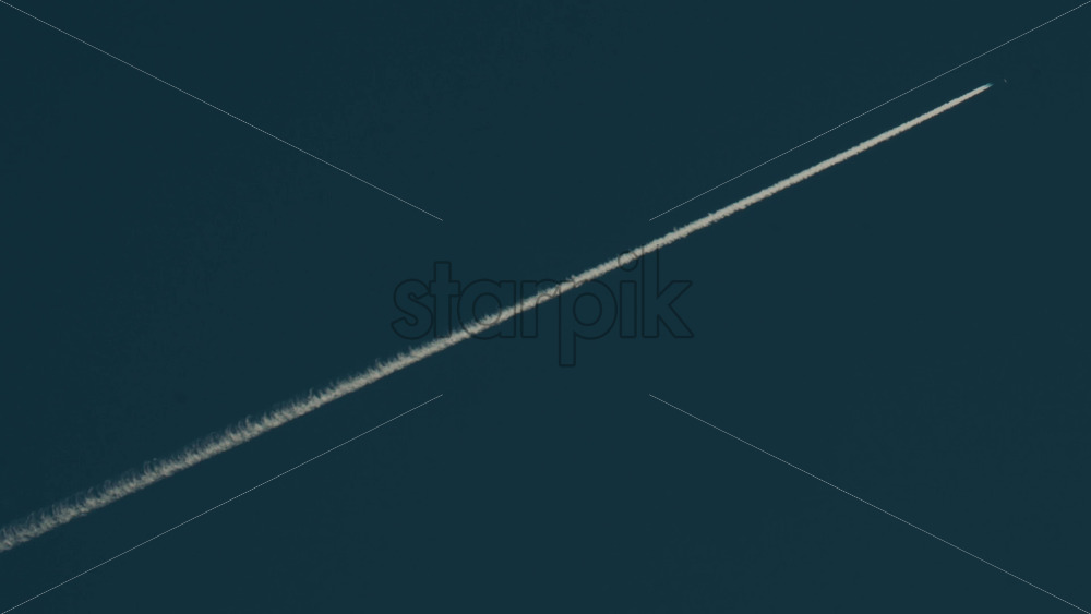 Cannes, France – October 10, 2025: Airplane flying high above leaving long contrails in a clear blue sky Royalty Free Stock Video Footage