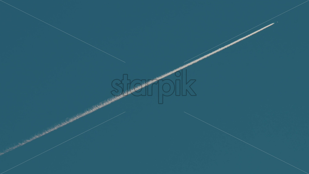 Airplane flying high above leaving long contrails in a clear blue sky Royalty Free Stock Video Footage